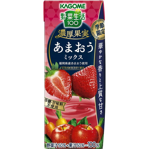 Source: www.drinkmenu.net 野菜生活100 濃厚果実 博多あまおうミックス 福岡県産の博多あまおうを使用した、華やかな香りと上質な甘さが特徴の野菜&果実100%ミックスジュースです。 あまおうの特徴は、「あ」かい・「ま」るい・「お」おきい・「う」まい! カゴメ 野菜生活100 濃厚果実 博多あまおうミックス 195ml 紙パック 1ケース(24本)(清涼飲料・ドリンク)の通販なら「たのめーる」!カゴメ 野菜生活100 濃厚果実 博多あまおうミックス 195ml 紙パック 1ケース(24本)の口コミ・レビューも満載!ご注文いただいた商品は最短で翌日にお届けします!